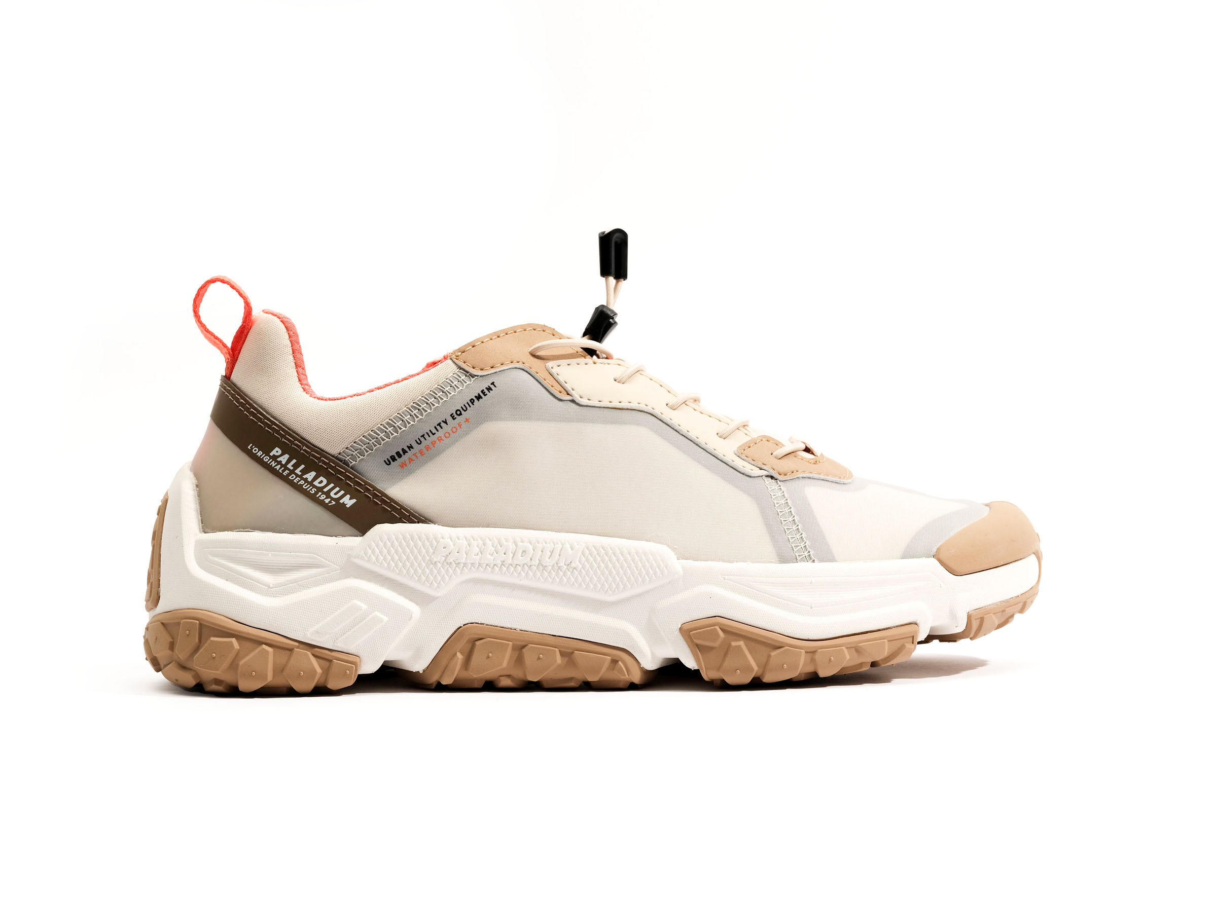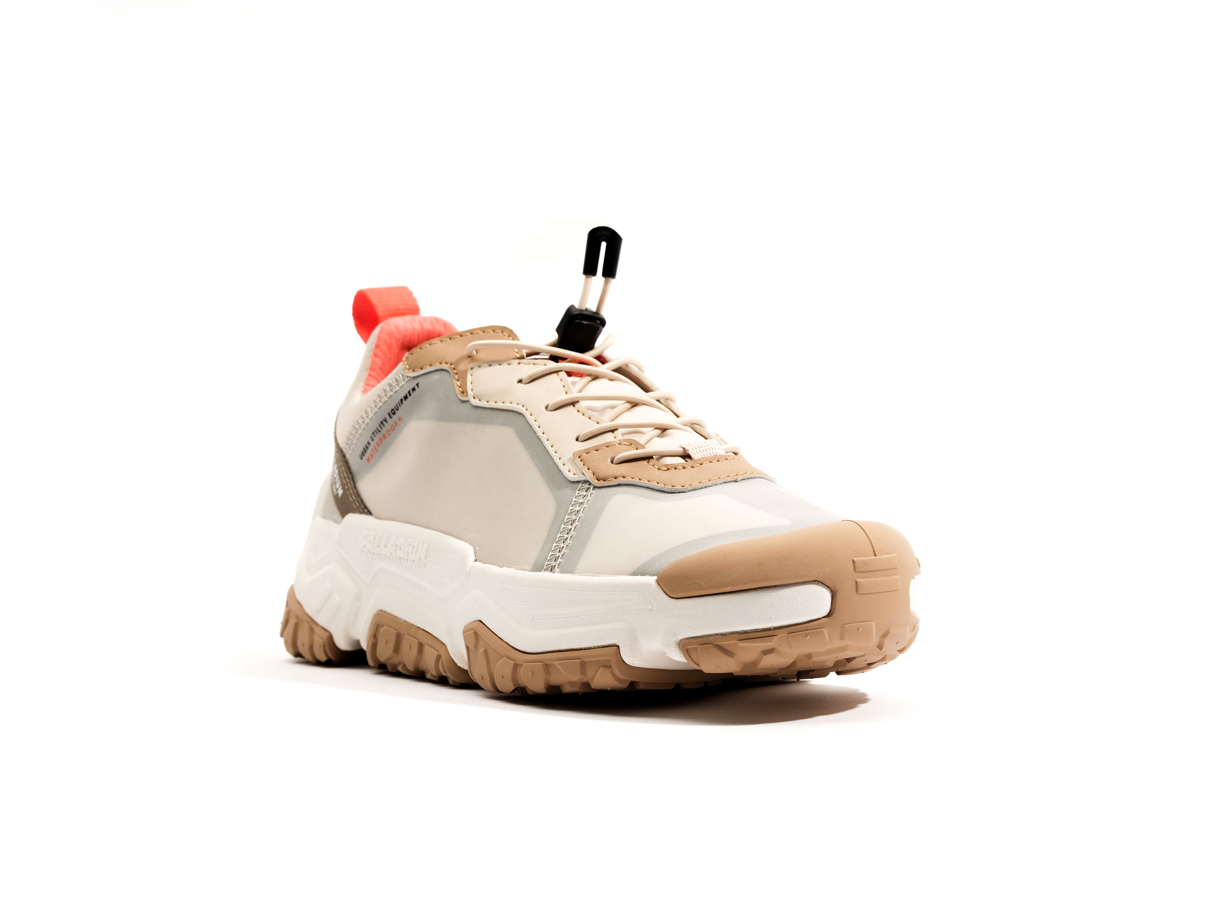 OFF-GRID LO WP+低筒鞋採防水塗層布面物料+內層透氣防水科技薄膜做鞋??.質料 輕盈。與我們所有的Off-Grid 以其超大蜂窩狀外底脫穎而出 .提供超強的抓地力和別緻的外觀 .並添加快速綁帶系??.適合戶外探穿著??/div>