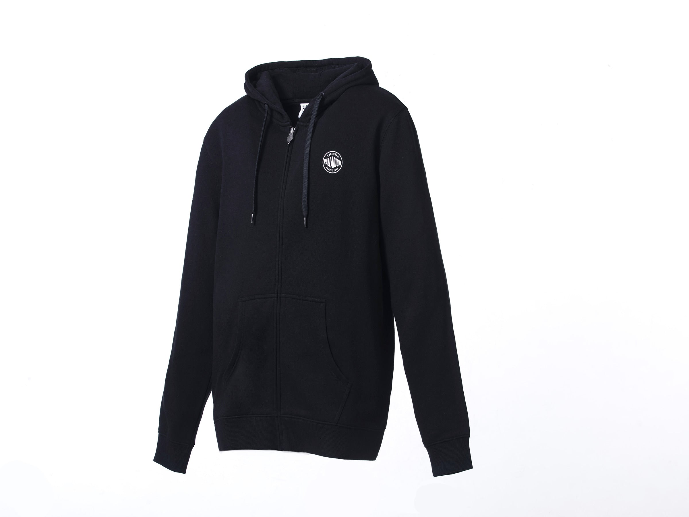 The Core Logo Zip Up Hoody PS (Palladium sleeve) is a soft-touch full zip hooded fleece with a front kangaroo style pocket. and rib knitted cuffs and hem. The zipper pull is a molded metal Palladium logo. The hoody is a double layer 3 piece construction with an adjustable flat draw cord with metal anglets (tips). This hoody features a blend of cotton and polyester in a tight weave that offer warmth. durability and limited shrinkage. The front features a contrast round Core logo printed on the left chest and a large Palladium logo printed on the right sleeve.