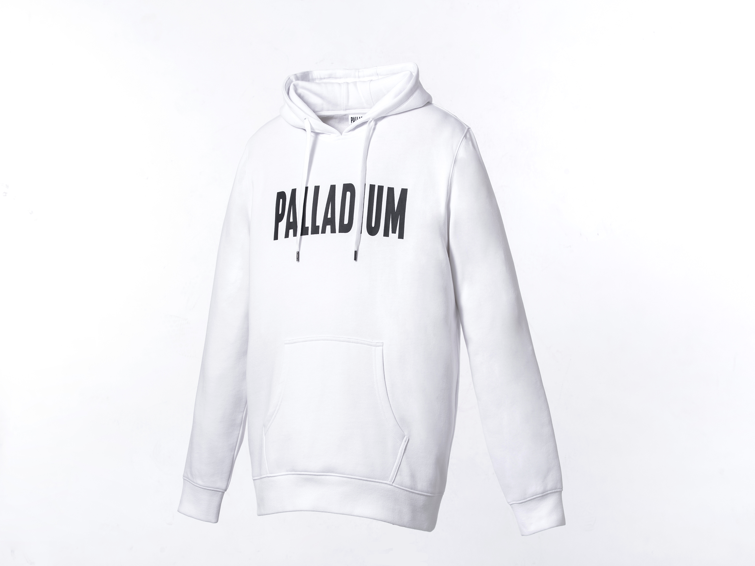 The Palladium Hoody is a soft-touch hooded fleece with a front kangaroo style pocket. and rib knitted cuffs and hem. The hoody is a double layer 3 piece construction with an adjustable flat draw cord with metal anglets (tips). This hoody features a blend of cotton and polyester in a tight weave that offer warmth. durability and limited shrinkage. The front features a large Palladium Core logo over in the upper left with a Palladium print on the right cuff.