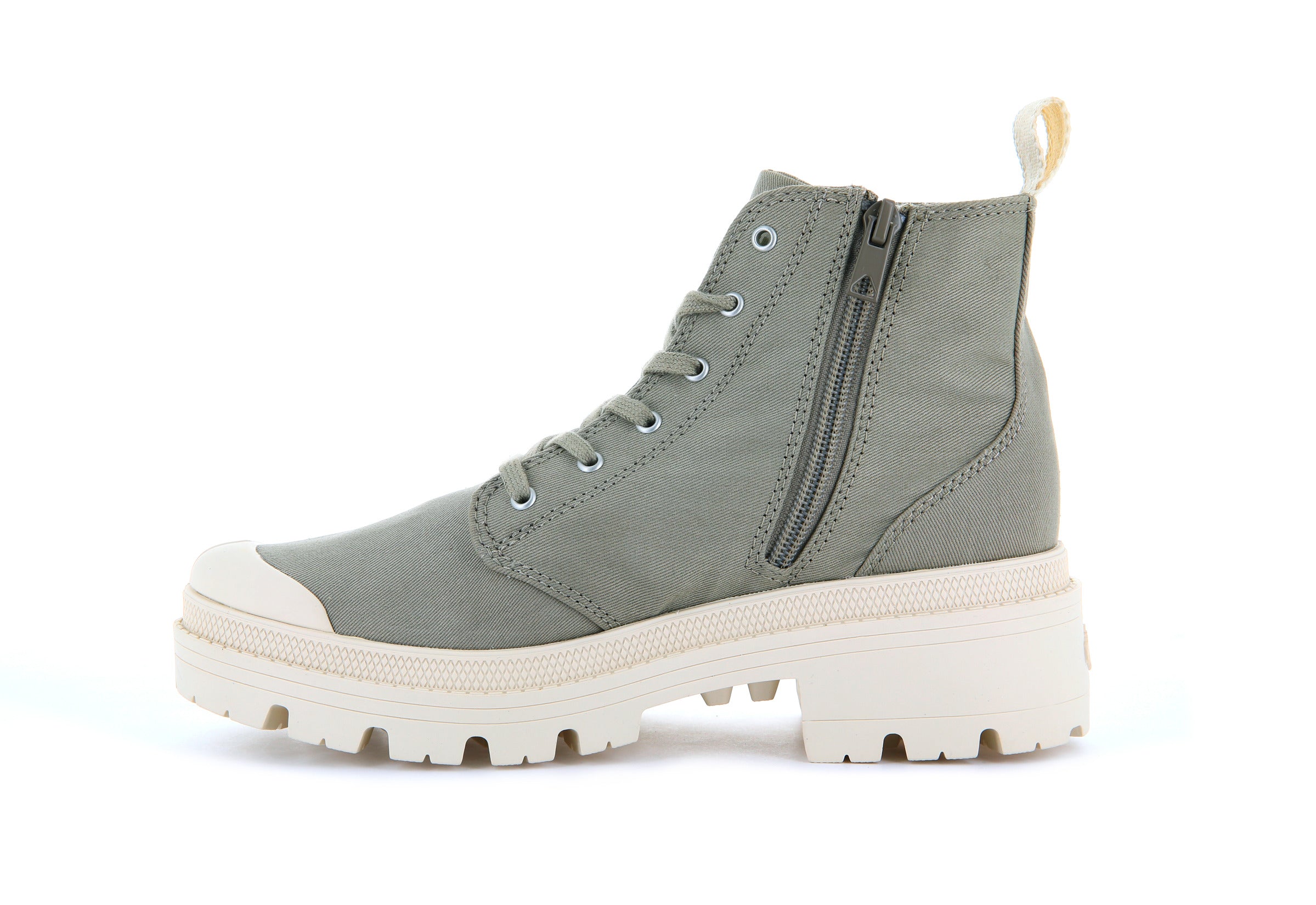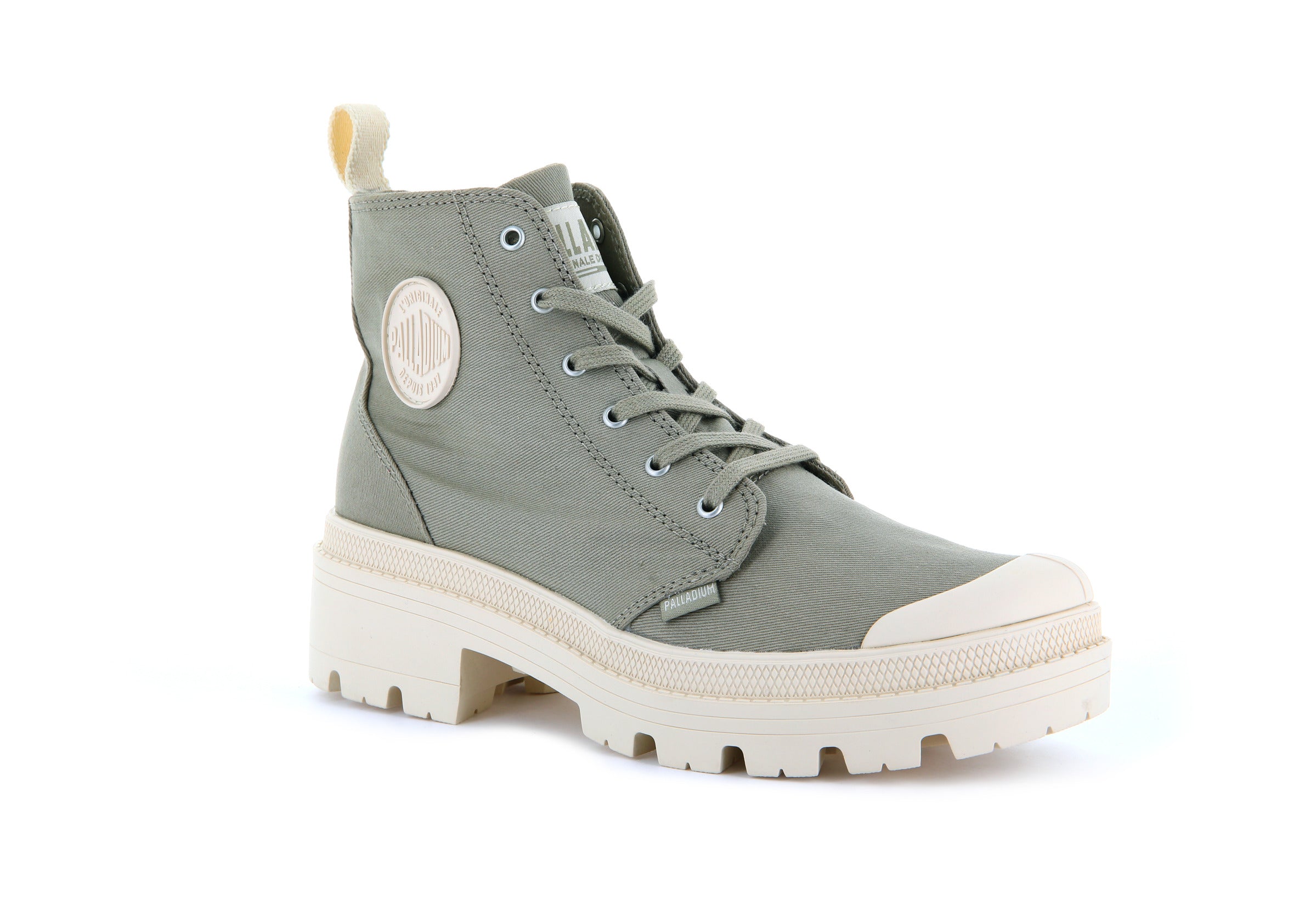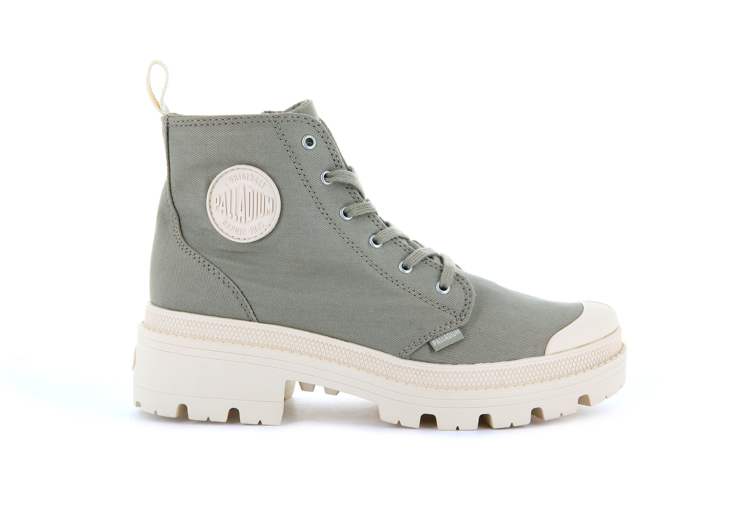 An elevated conscience stays above the noise. That’s the feeling being the Pallabase Twill. a higher level of feminine sophistication in a package that is clearly Palladium. The heel counter of the chunky outsole has been made higher for a lifted look. and the durable twill upper has a discrete side zip entry. A refined boot for those who take the high road.